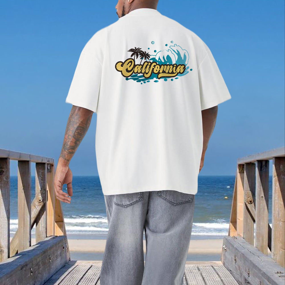 California Wave Print Men's Short Sleeve T-shirt Big & Tall