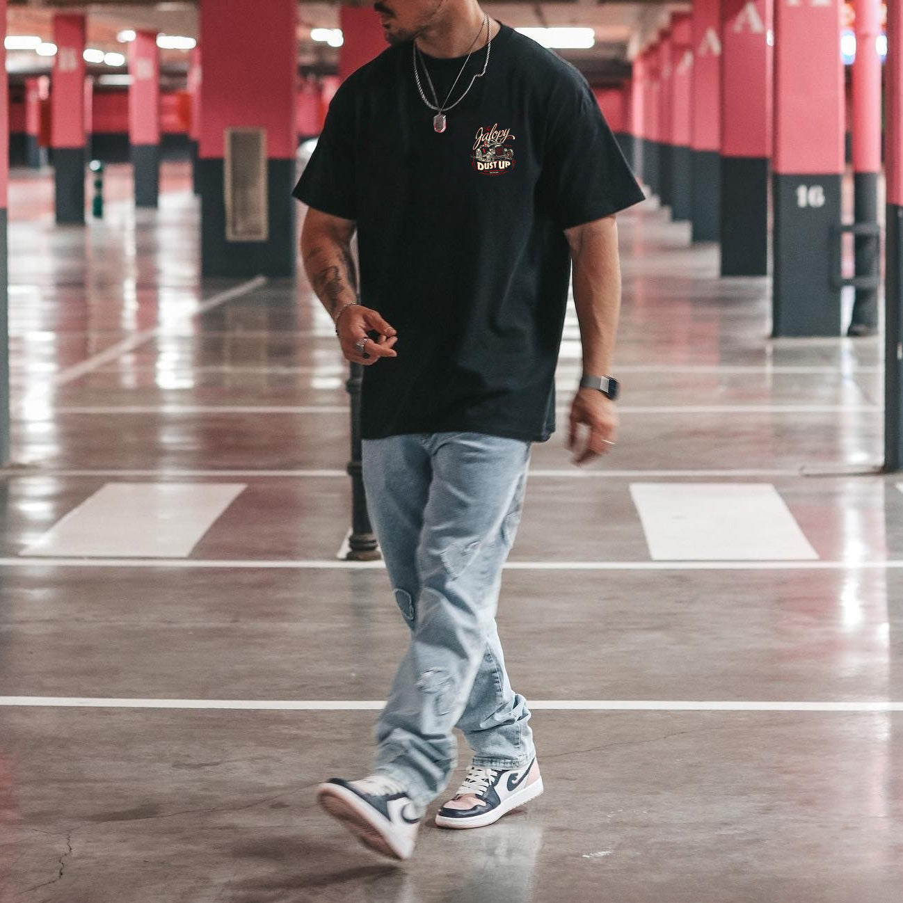 Car Alphabet Graphic Print Casual Loose Short Sleeve Men's T-Shirt