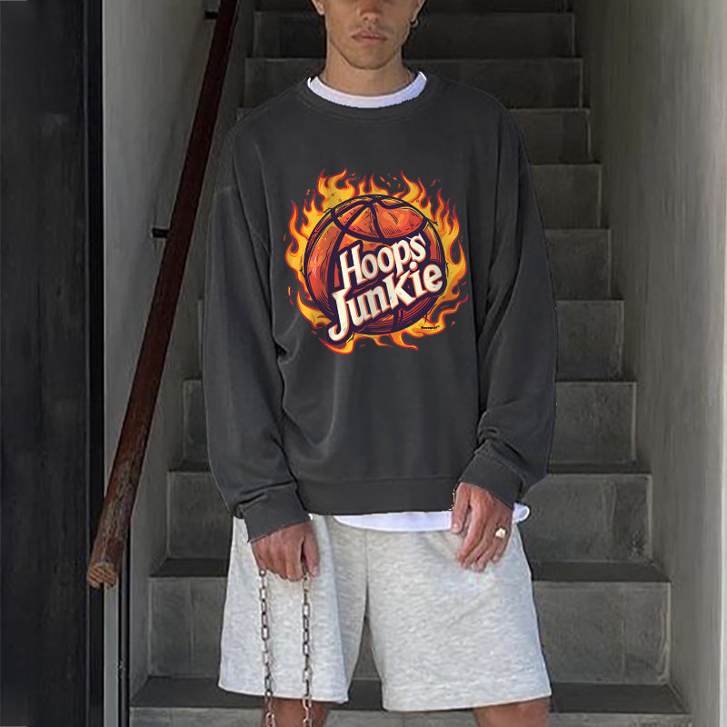Hoops Junkie Basketball Print Men's Pullover Sweatshirt