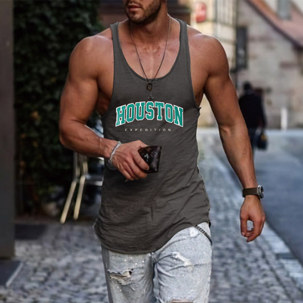 HOUSTON Alphabet Print Athleisure Men's Tank Top