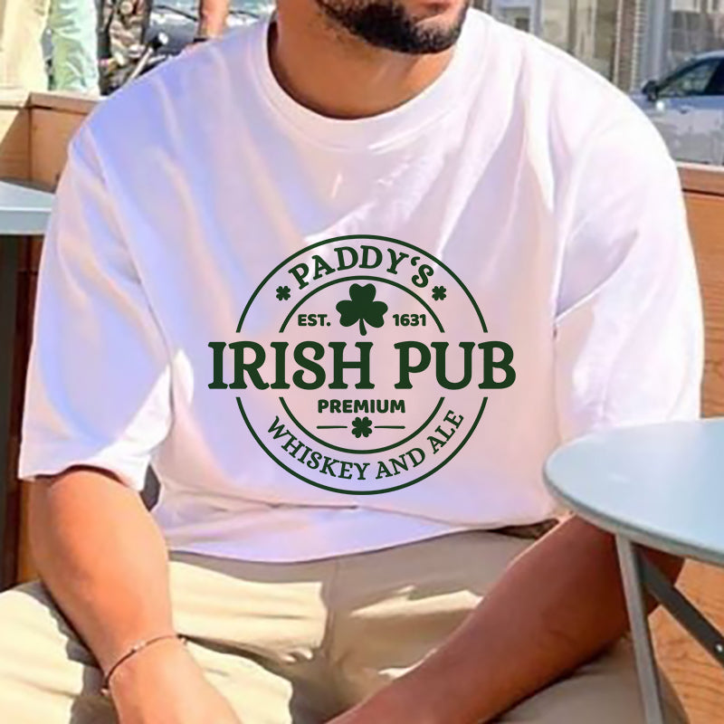 Step into the spirit of Ireland with our Men's Paddy's Irish Pub T-Shirt! Perfect for St. Patrick's Day or as a tribute to your favorite Irish alehouse.