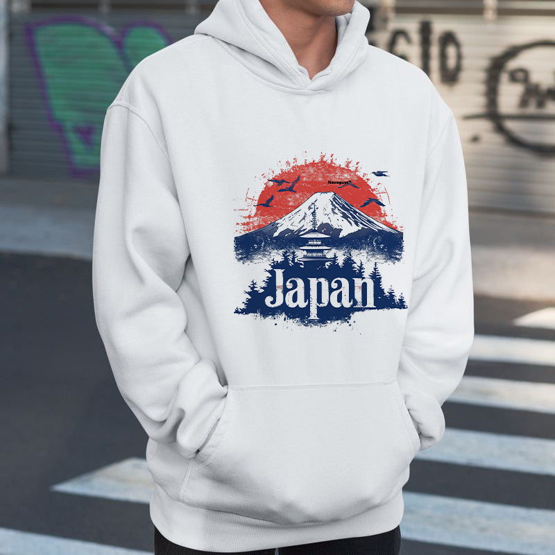 Japan Fuji Mountain Men's White Fleeced Hoodie