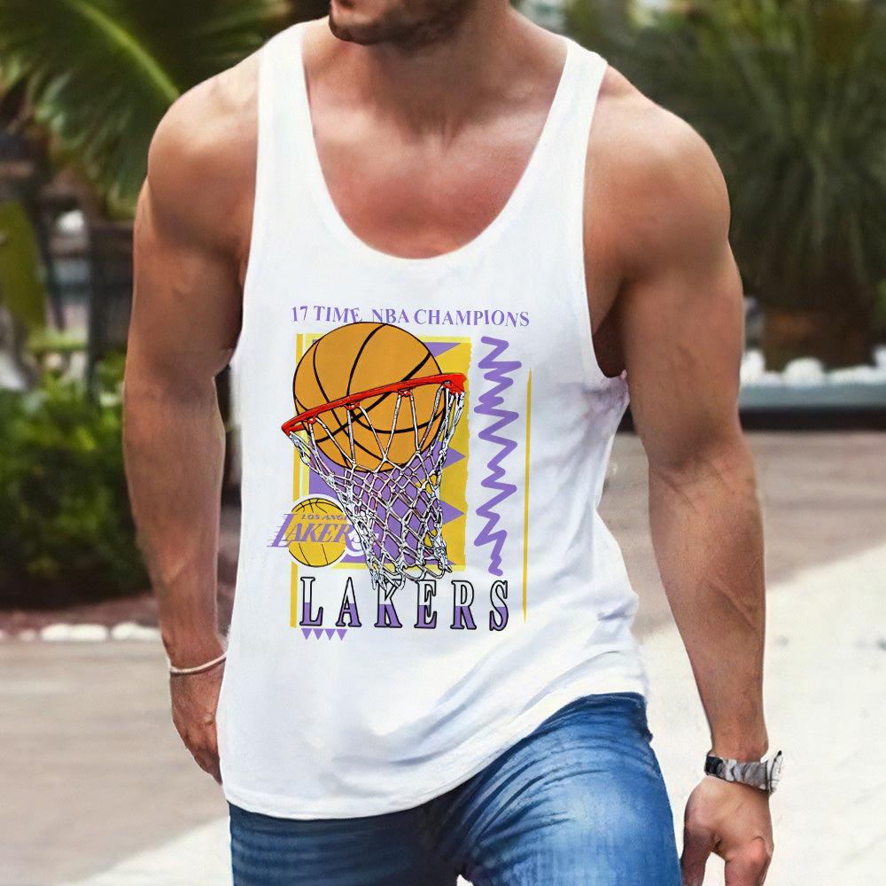Lakers Letter Graphic Print Basketball Sports Casual Men's Tank Top-A