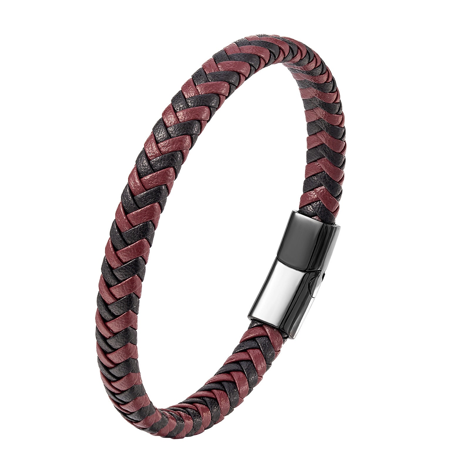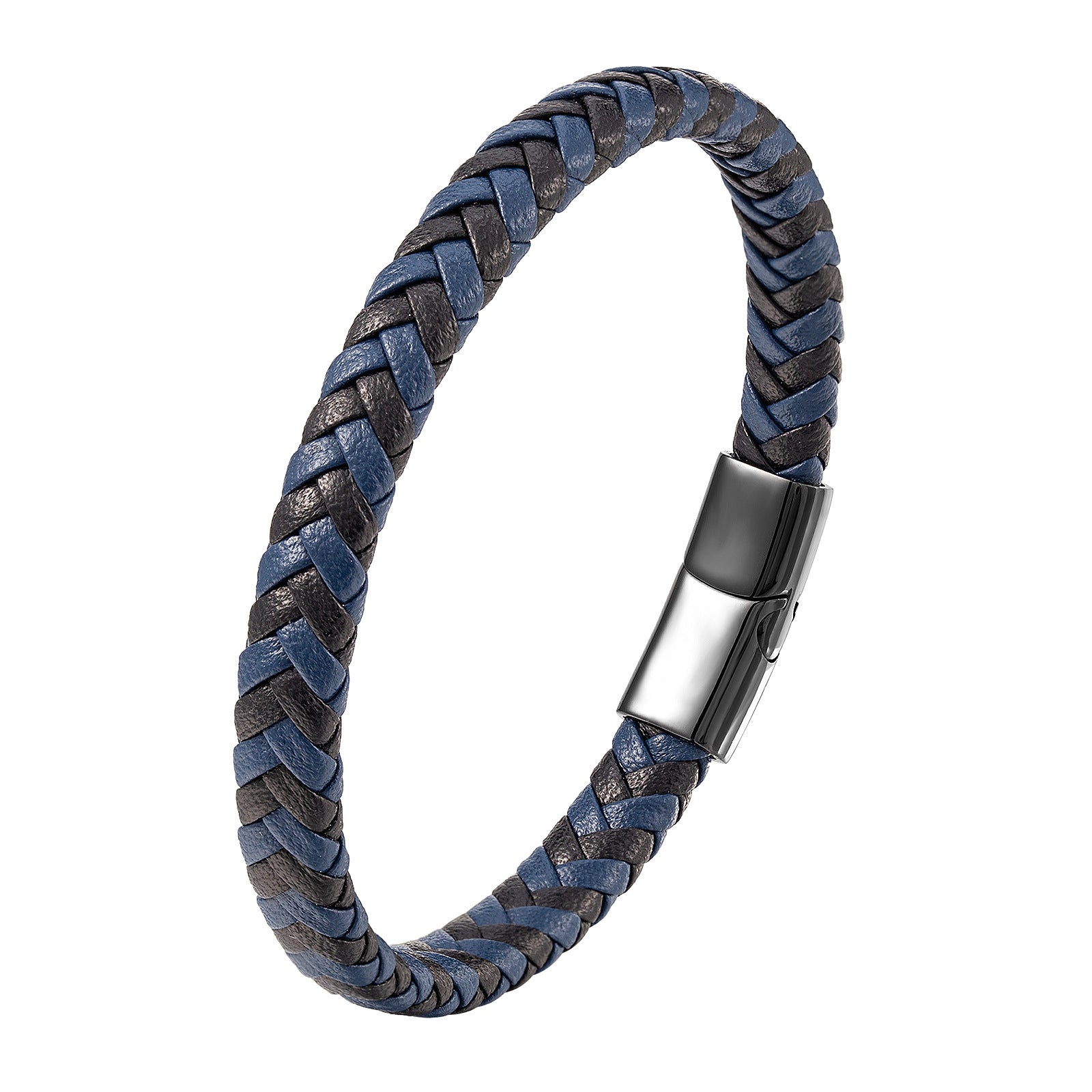 Leather Rope Stainless Steel Men's Braided Bracelet