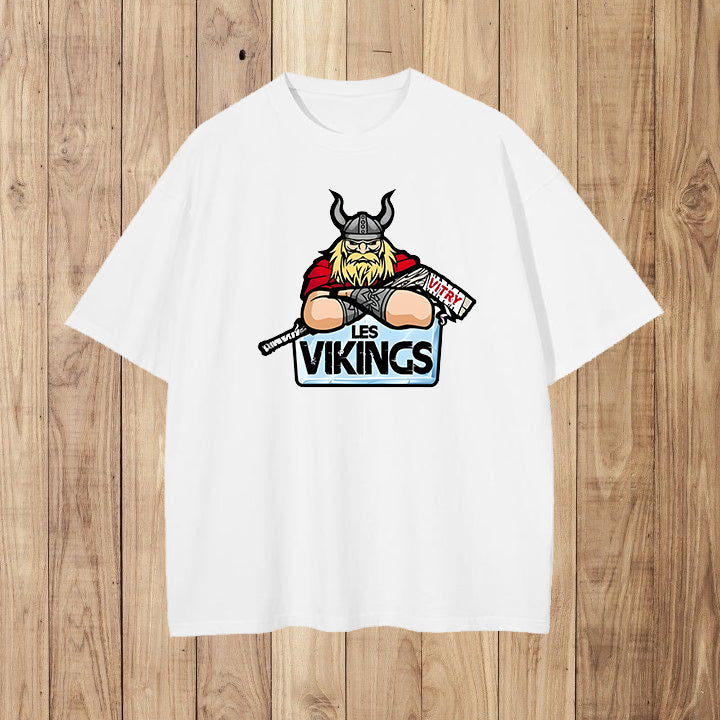 Embrace the rich heritage of ancient viking culture with our captivating print, showcasing vibrant cartoon illustrations of Viking characters. Inspired by the legendary Vikings of the North, this design pays homage to their adventurous spirit and fearless nature. Occasion:Whether you're exploring the outdoors or simply looking for a unique statement piece, our Viking-inspired print is sure to make a bold impression. Elevate your style with our North-inspired Vikings Cartoon Print T-Shirt.