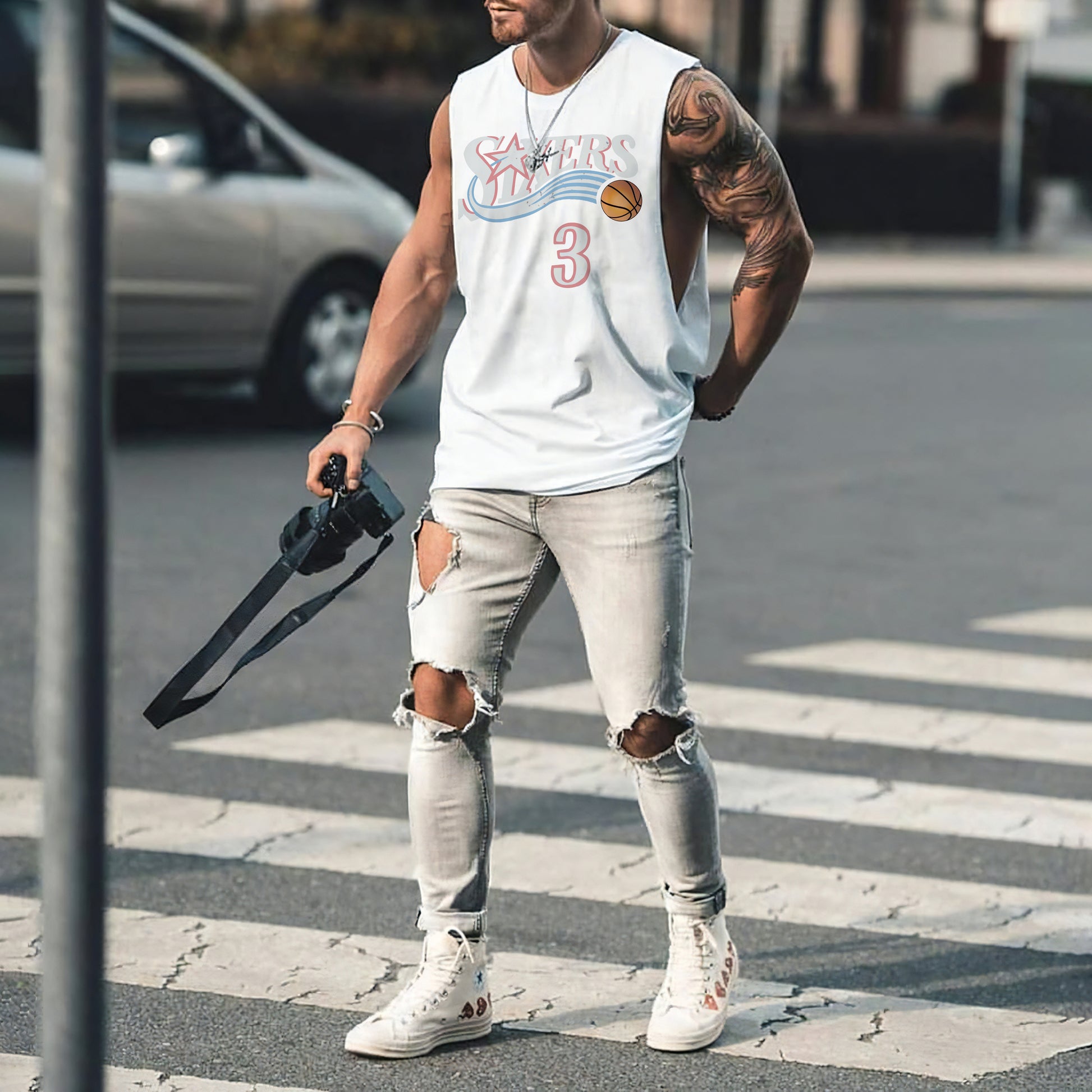 Letter Graphic Print Basketball Sports Casual Men's Tank Top-B