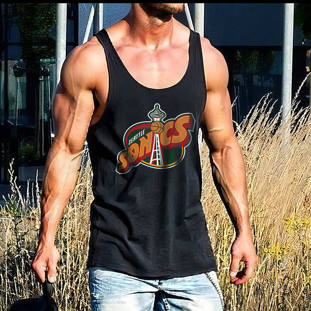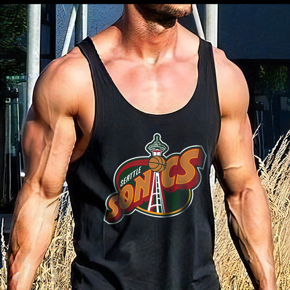Letter Graphic Print Loose Athleisure Men's Tank Top-A