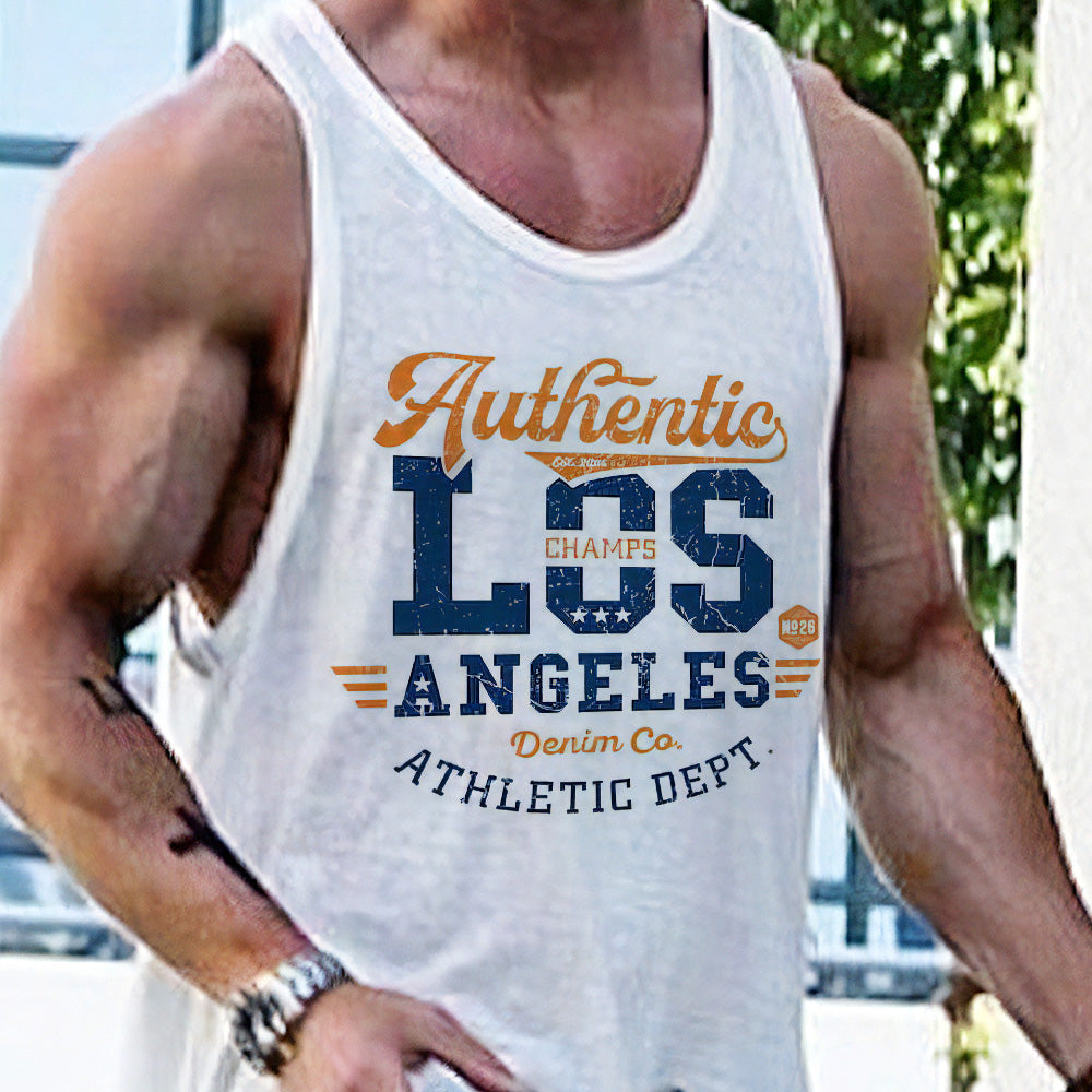 Los Angeles Alphabet Graphic Print Loose Athleisure Men's Tank Top-A