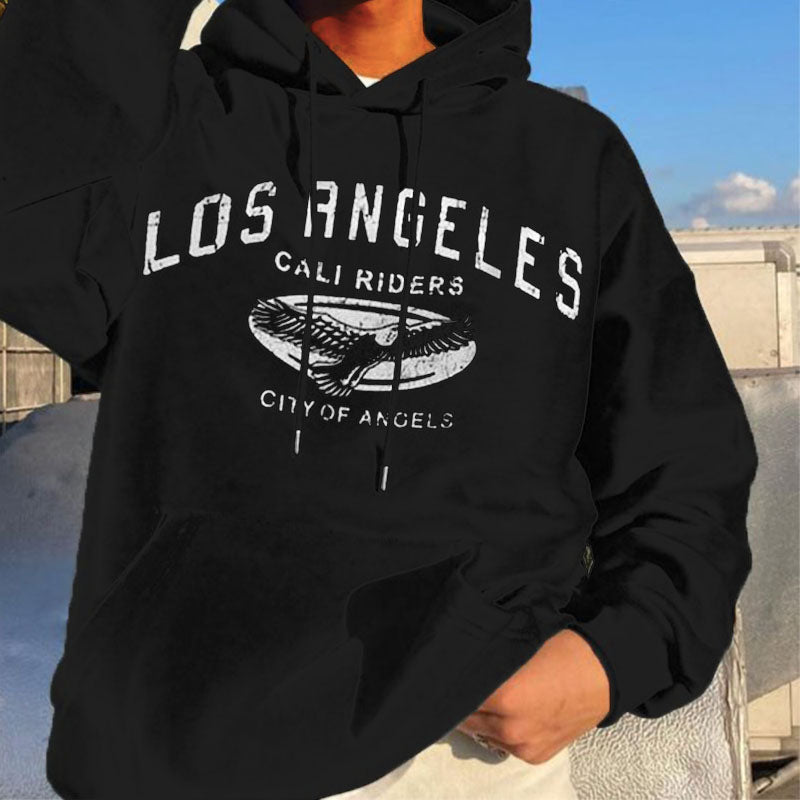 Los Angeles Graphic Print Men's Fleece Hoodie Black 320g