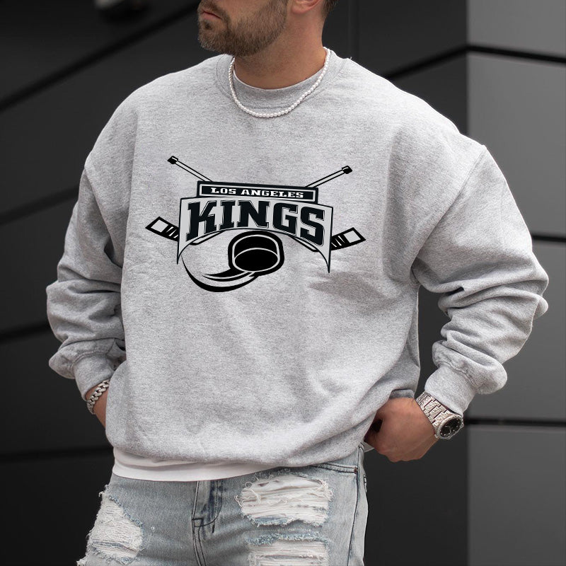 Introducing our latest arrival, the round neck sweatshirt featuring an exclusive design print of the Los Angeles Kings. This stylish sweatshirt showcases the iconic Kings logo, allowing you to proudly display your support for the team. Crafted with premium materials, it offers superior comfort and durability. Whether you're watching the game at the Staples Center or cheering from home, this sweatshirt will keep you cozy and fashionable. Join the passionate sea of silver and black and grab yours today to show your unwavering allegiance to the Los Angeles Kings. Get ready to reign supreme in style!