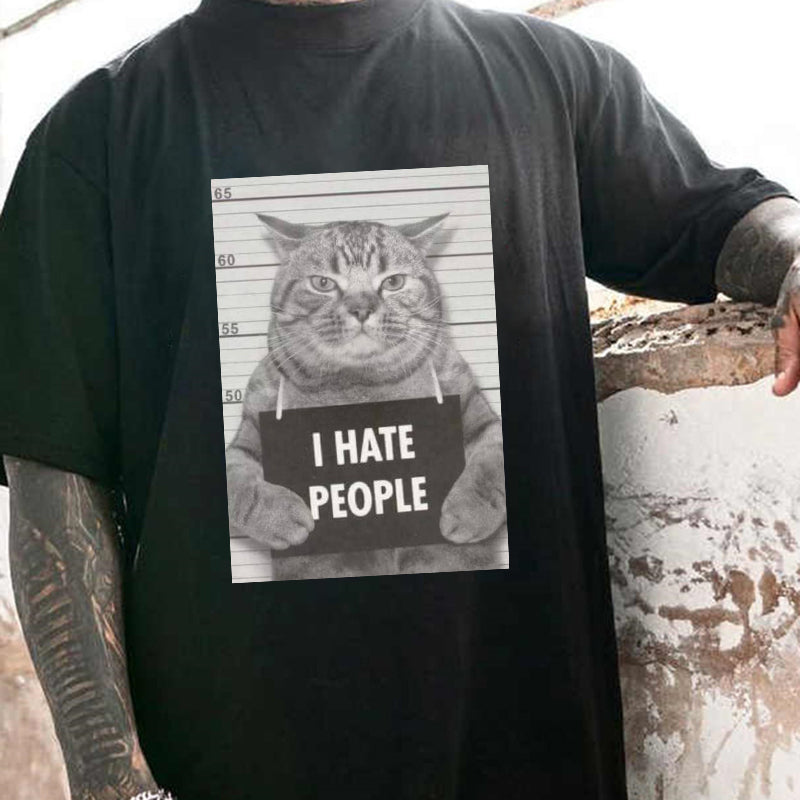 Men's Funny Cat Print Oversized T-shirt Big & Tall