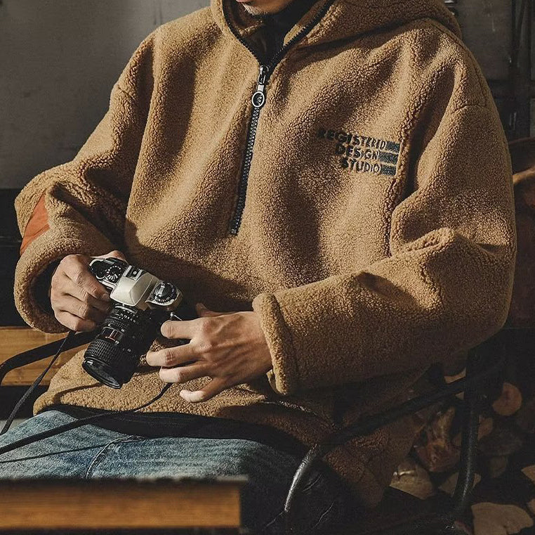 Introducing our Men's Retro Fleece Hooded Sweatshirt, a perfect blend of vintage style and modern comfort. This meticulously crafted hoodie is made from premium sheepskin-like fleece, providing a soft and cozy feel. The front features a convenient zipper closure, allowing for easy wear and removal. Additionally, it is equipped with practical front pockets for storing essentials. If you prefer a looser fit, we recommend ordering one size up for a more relaxed and comfortable experience. Embrace the timeless appeal of this hoodie and elevate your wardrobe with its retro charm.