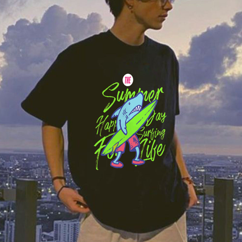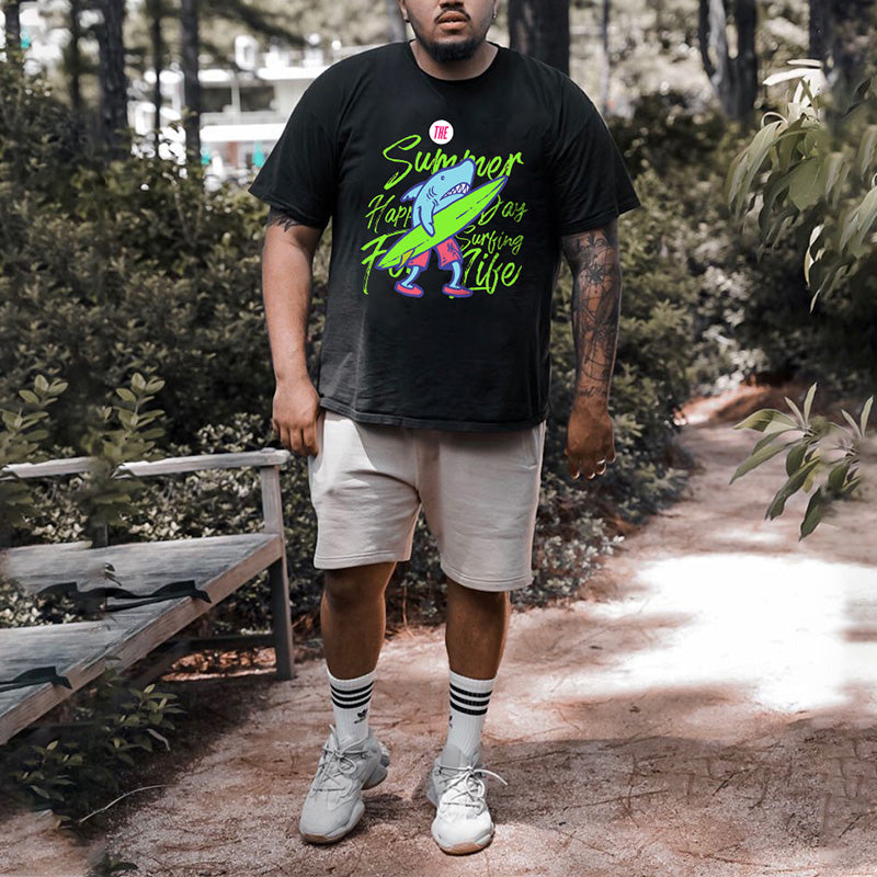 Men's Lovely Shark Sea Animal Surfing Printed T-shirt Big & Tall