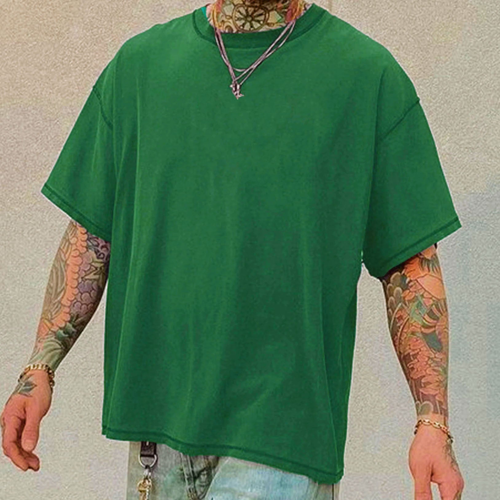 Men's Plain Color Oversized Cotton T-shirt -Green