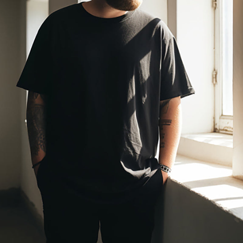 Men's Plain Oversized Cotton T-shirt - Black Big & Tall