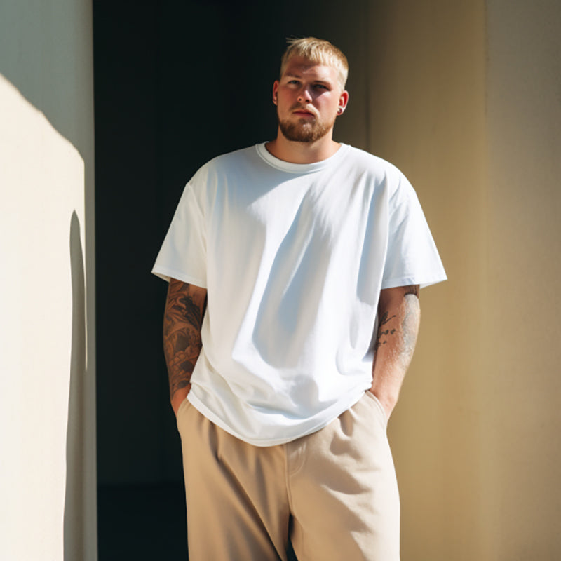 Looking for a loose-fitting solid color T-shirt? It doesn't matter what body shape you have, what matters is that we have the perfect T-shirt for you. We believe that everyone deserves to feel comfortable and confident in their clothing. We have the perfect option for you. With its loose chest, and moderate length, our T-shirt caters to both regular and big and tall sizes. Our unique design philosophy seamlessly blends comfort and style, creating an unparalleled T-shirt.