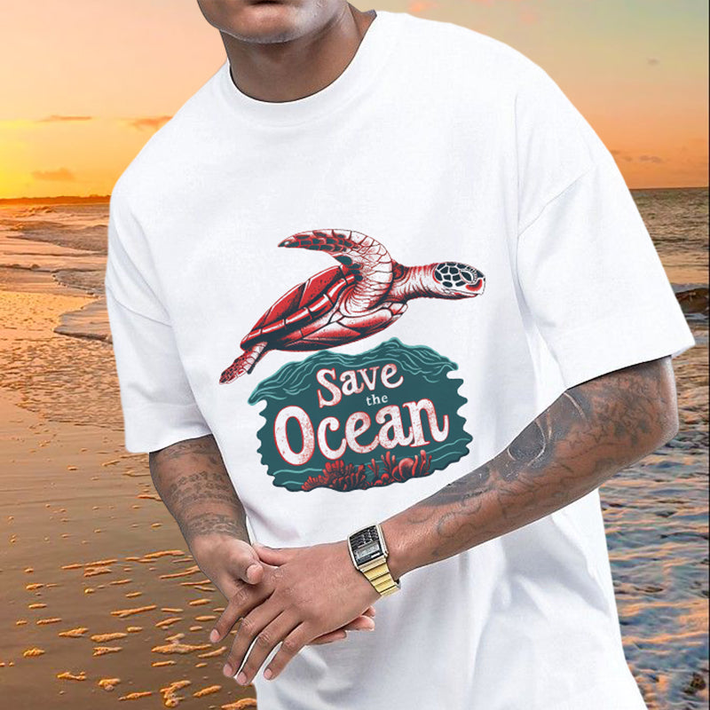 Men's Sea Turtle Print Oversized T-shirt