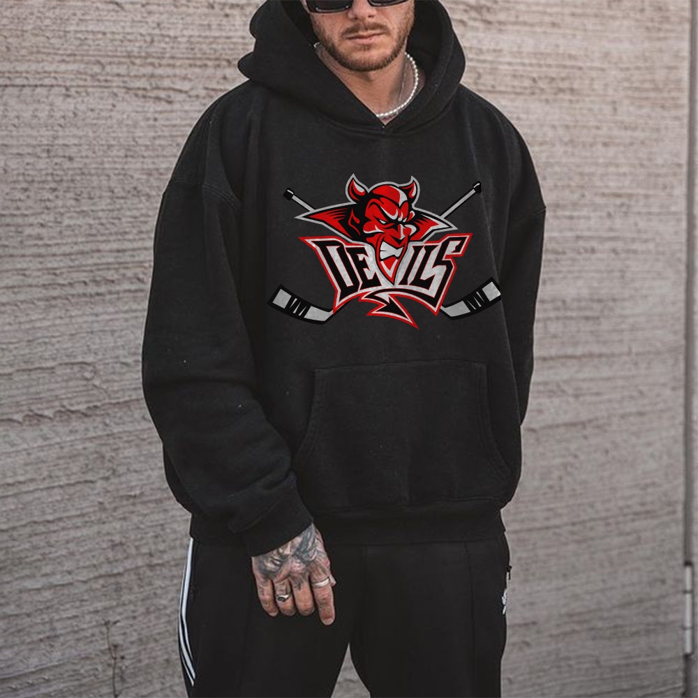 Introducing our striking New Jersey Devils Hoodie, designed for true fans of the team! This hoodie features a bold print of a devil inside the letter "D," showcasing the iconic emblem of the New Jersey Devils. Crafted from high-quality materials, it offers optimal comfort and durability. The relaxed fit and soft fleece lining ensure warmth and coziness, making it perfect for game nights or casual outings. Whether you're cheering from the stands or representing your team in style, this hoodie is a must-have. Embrace the spirit of the Devils with our printed hoodie and show off your passion with an edge!