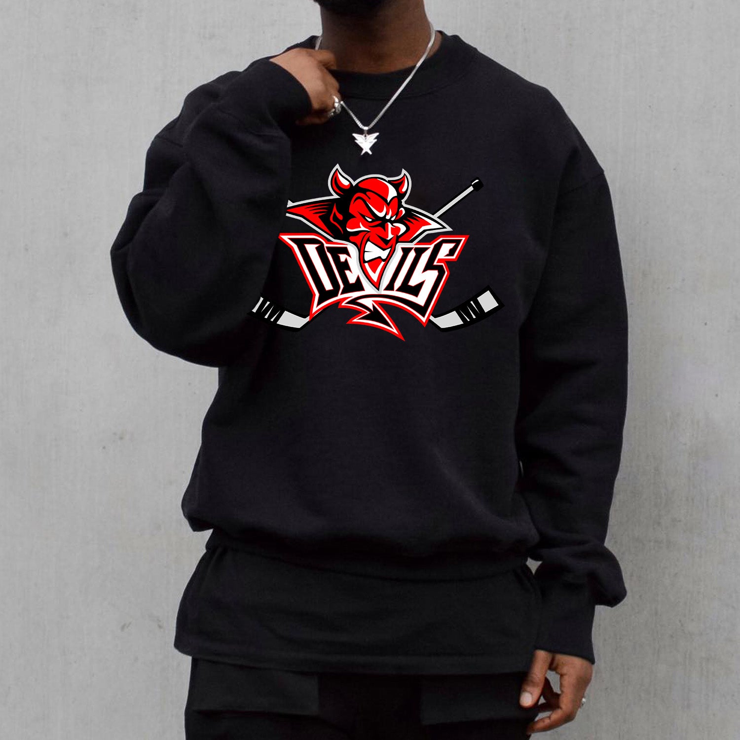 Elevate your game-day fashion with our New Jersey Devils sweatshirt. Crafted with a comfortable round neck and adorned with the iconic Devils logo, this sweatshirt is a must-have for any passionate fan. Stay warm and show off your team spirit whether you're cheering from the stands or watching from home. Join the red and black army and let everyone know where your loyalty lies. Get your hands on this stylish sweatshirt today and rock that devilish pride!