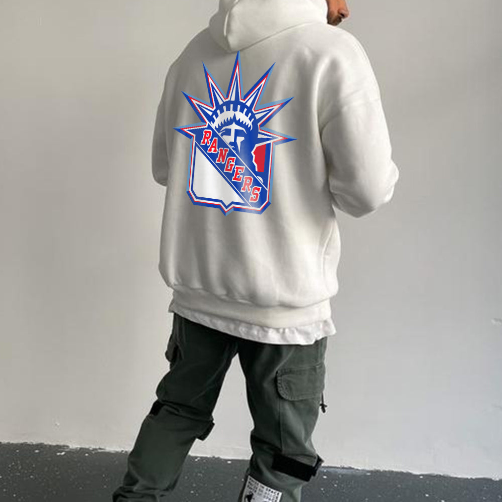The perfect combination of fashion and warmth! The New York Rangers printed fleece loose hooded sweatshirt is your ideal choice. The print shows your love for your team. The relaxed fit and fleece fabric provide excellent comfort. Whether watching the game or wearing it every day, it can keep you warm and fashionable. Not only does this sweatshirt show your support for the New York Rangers, it also becomes the highlight of your personal style. Choose the New York Rangers printed fleece loose hooded sweatshirt to enjoy comfort and style at the same time and show the world your passion for the team!