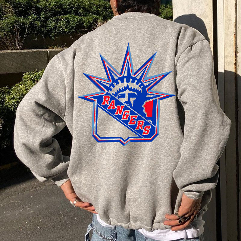 Gear up and show your support for the New York Rangers with our New York Rangers round neck sweatshirt. Featuring the iconic Rangers logo, this sweatshirt is a must-have for passionate fans. Designed for both comfort and style, it's perfect for game days or casual outings. Join the blue and white army and let your love for the Rangers shine through. Whether you're at Madison Square Garden or watching from home, this sweatshirt will keep you cozy while displaying your team pride. Get yours now and rock that Rangers spirit!