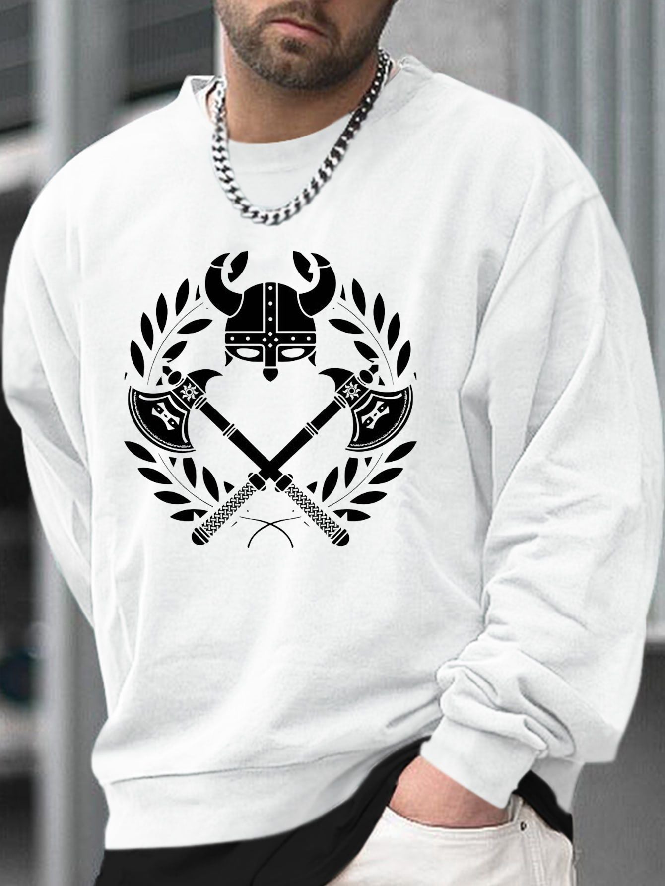 Nordic Heritage Attire Axe and Armor Print Men's Sweatshirt