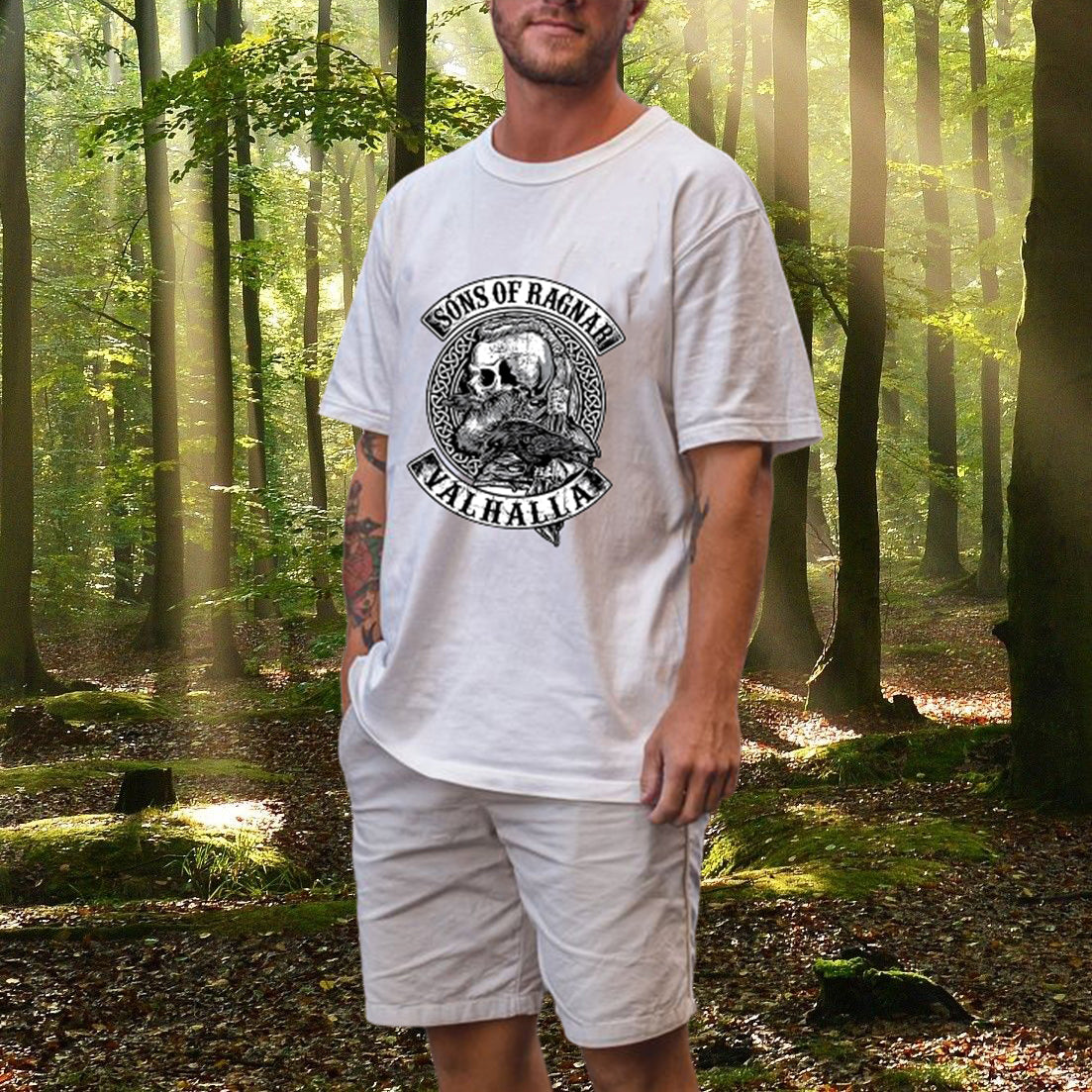 Pattern: "Sons of Ragnar" refers to the descendants of the Viking hero Ragnar Lothbrok, while "Valhalla" is the mythical realm in Norse mythology where brave warriors go after death. Features a striking and intricate Sons of Ragnar design, symbolizing the proud lineage of Ragnar's descendants and their fearless spirit. The Valhalla motif represents the ultimate destination for courageous warriors in Norse mythology. Stand out from the crowd and embody the strength and honor of the Sons of Ragnar with this exceptional T-shirt.
