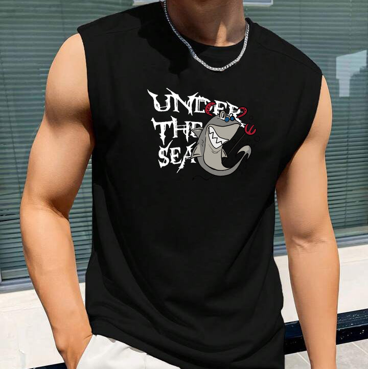 Shark Graphics Print Men's Tank Top-B