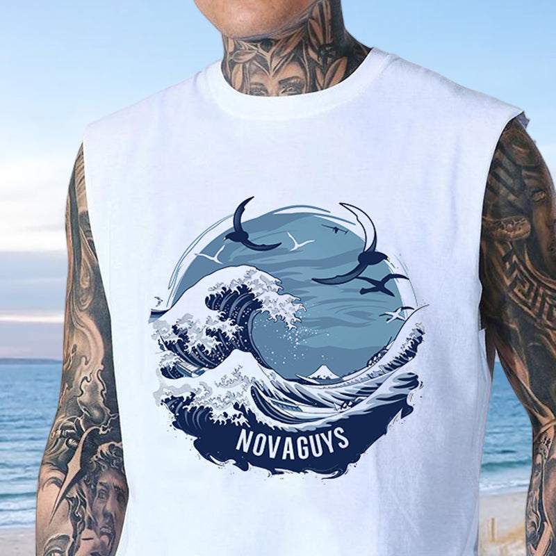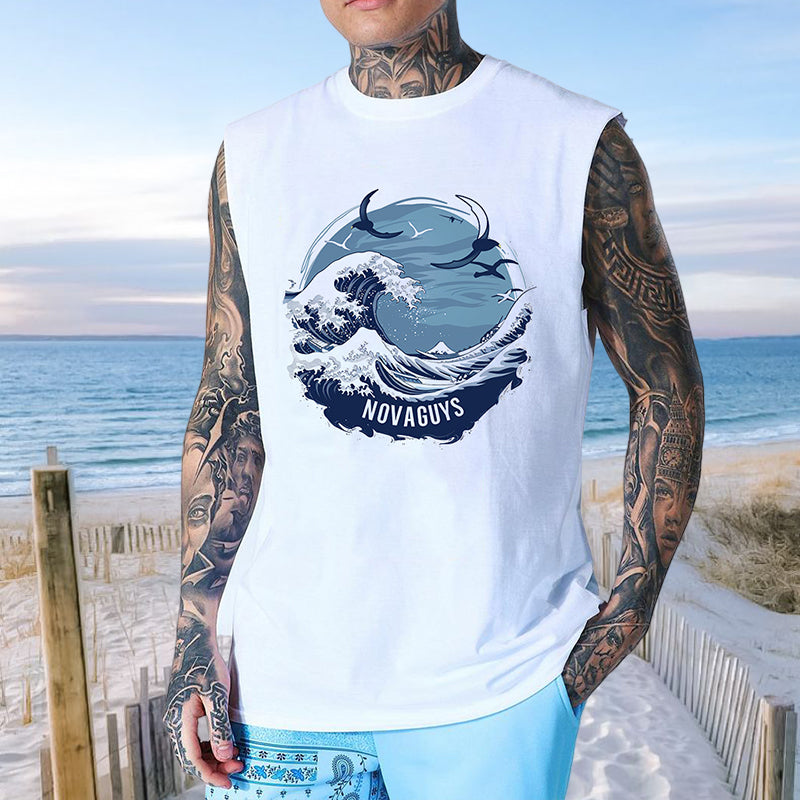 Ocean Wave Print Men's Cotton Tank Top