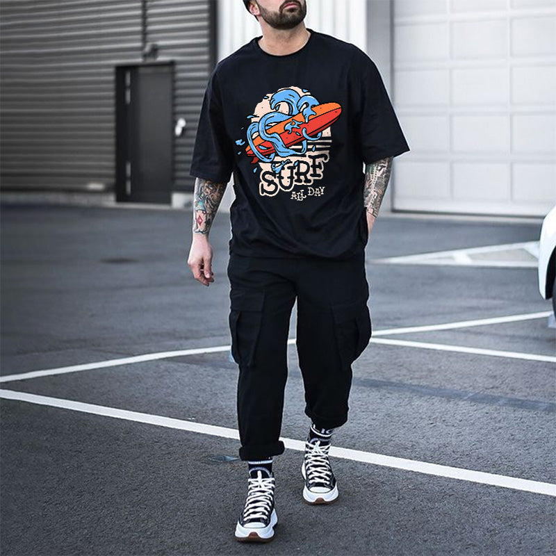 Embrace the vacation vibes or surf lifestyle with our men's surf printed t-shirt. Whether you're catching waves or simply embodying the beach spirit, let this shirt be your declaration to live each day with a passion for surfing. Ride the waves, soak up the sun, and let the world know that you're ready to surf all day!