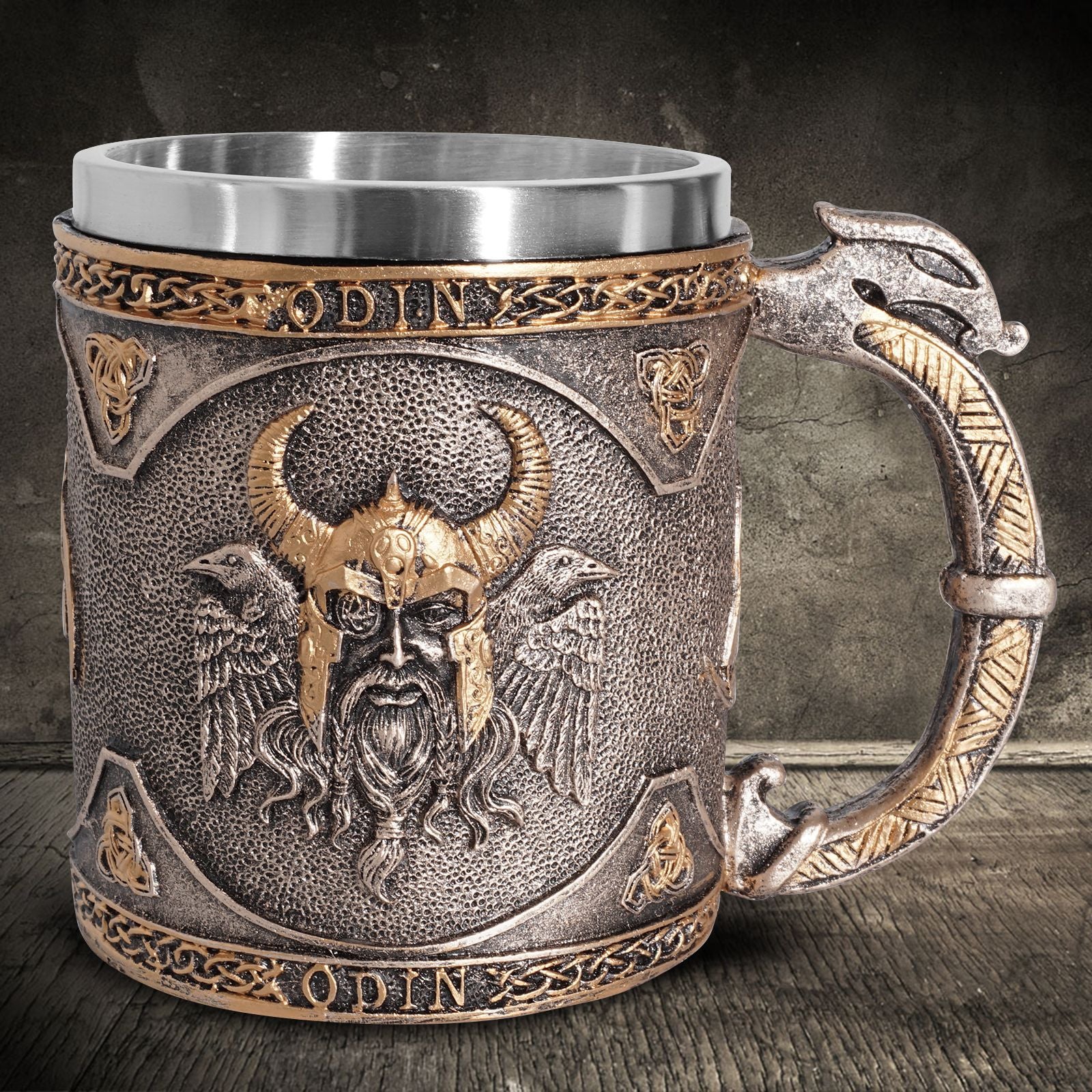 Introducing our retro-inspired mug, featuring a sleek stainless steel interior and a striking design of Odin and his two ravens. Perfect for on-the-go use or as a statement piece at home or the outdoors. Upgrade your drinkware collection with this one-of-a-kind retro mug.