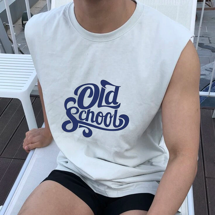 Introducing our Men's White Tank Top, crafted with 100% pure cotton fabric weighing 220g. This timeless piece features a comfortable and breathable design. The front chest proudly displays an Old School lettering print, adding a touch of vintage charm. Stay cool and stylish in this classic white tank top