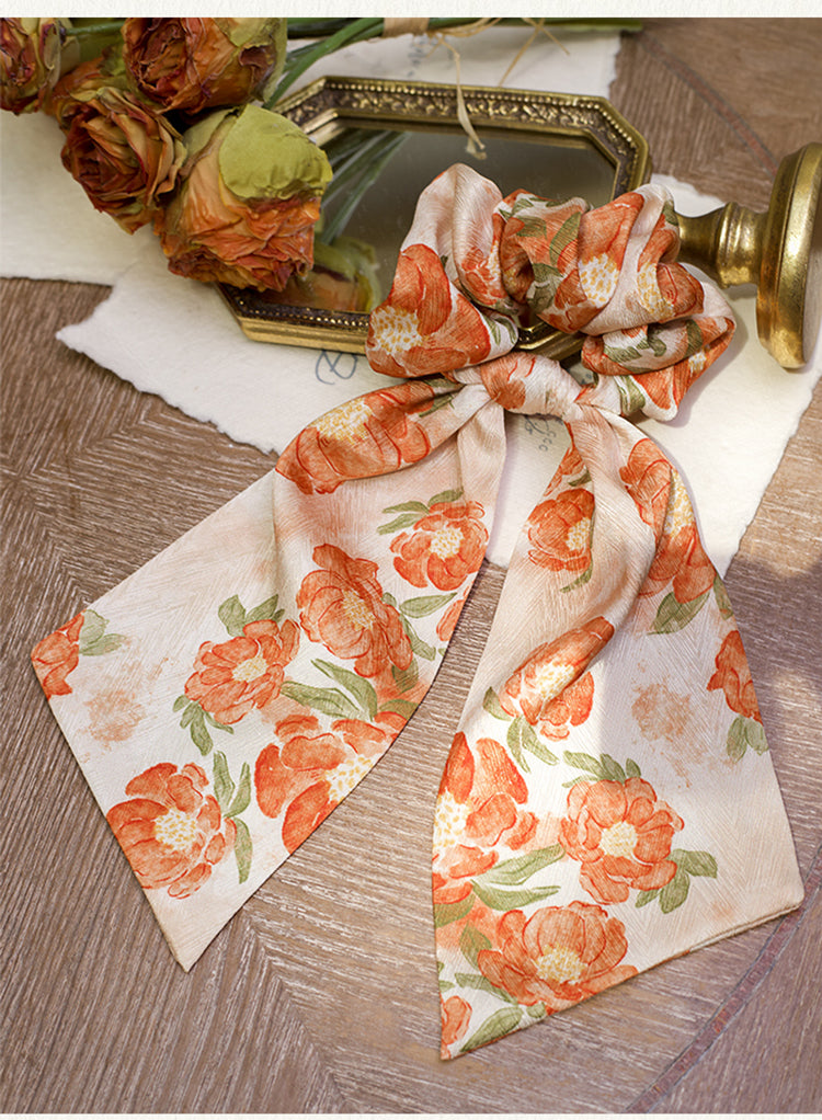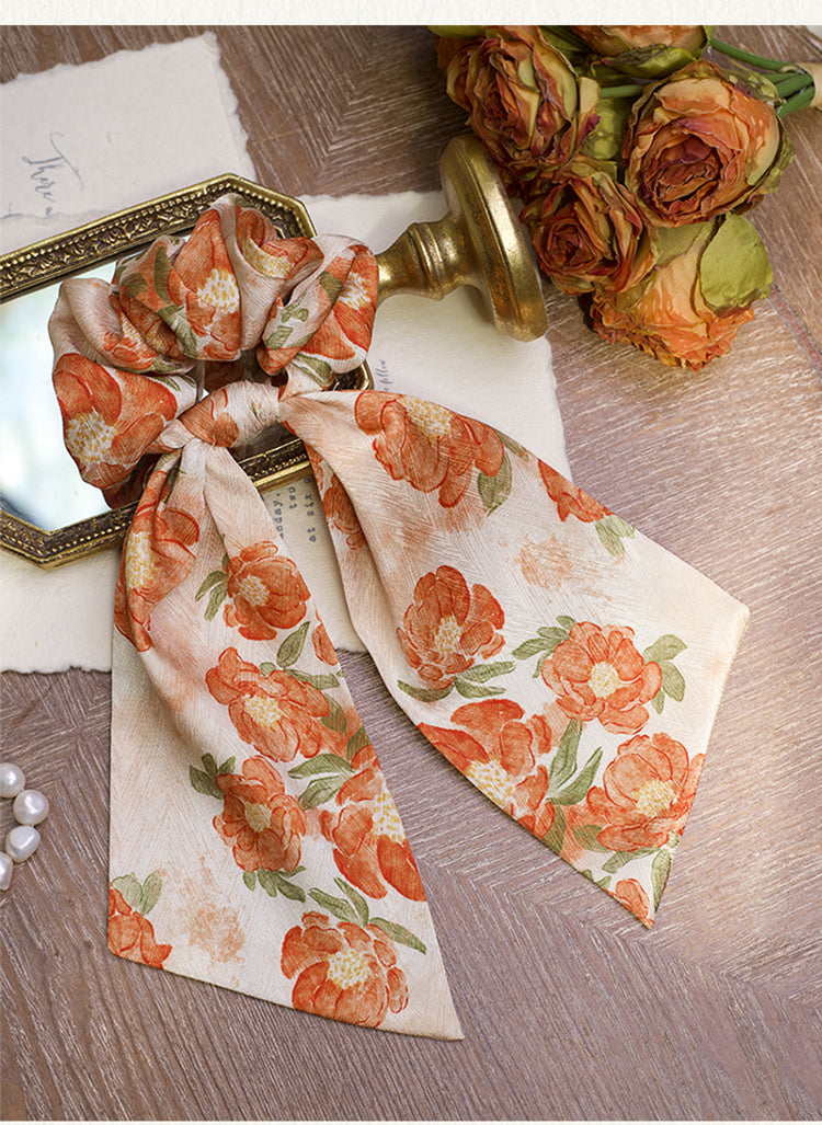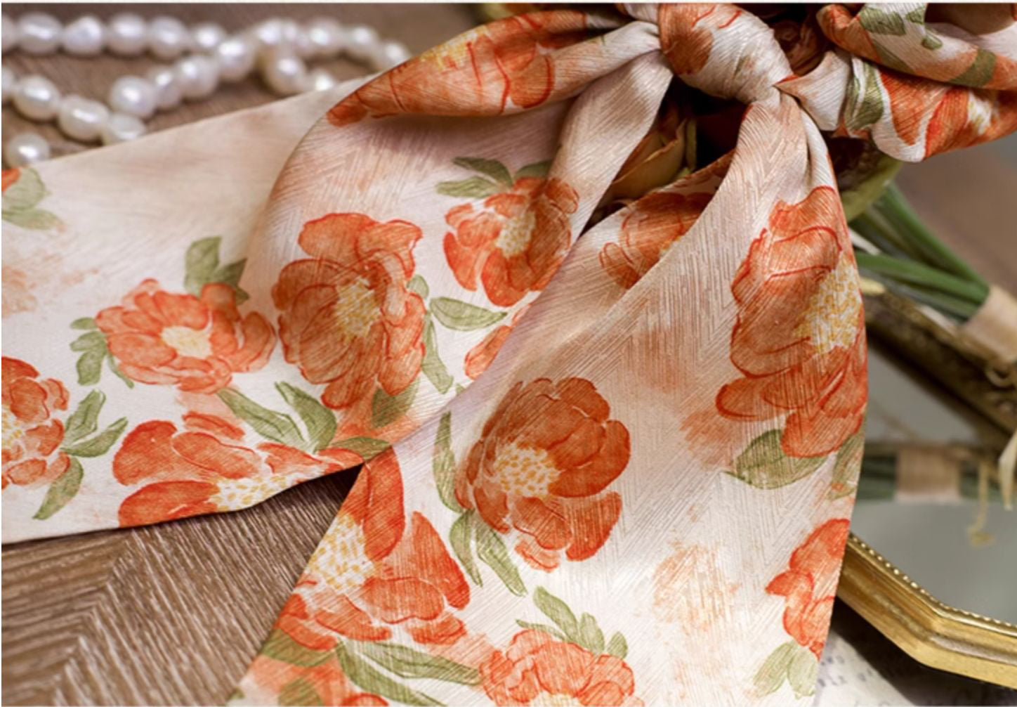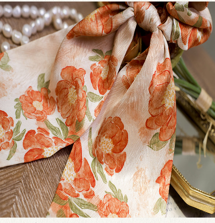 Embrace elegance with this gentle orange peony print on luxurious textured satin. This sophisticated headband adds depth and charm to your accessories collection. Perfect for everyday use, it can be styled effortlessly with low ponytails, high ponytails, buns, and side braids. An ideal gift for your girlfriend or a dear friend, this versatile hair tie brings a touch of refined beauty to any hairstyle. Elevate your look with this timeless and chic piece