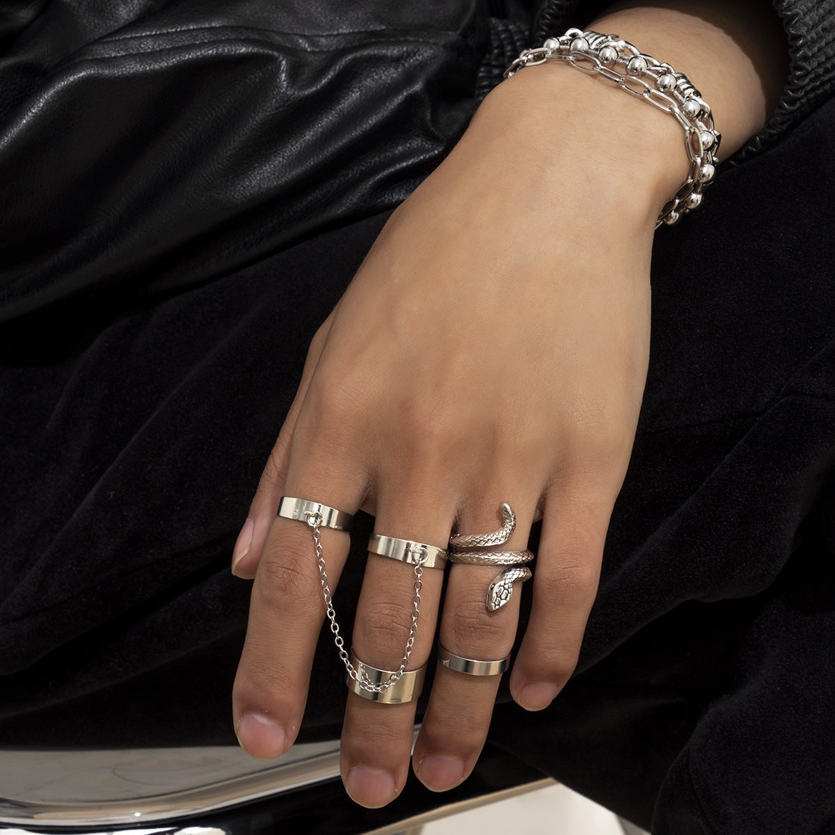Personality exaggerated snake-shaped one-piece ring fashion all-match ring set