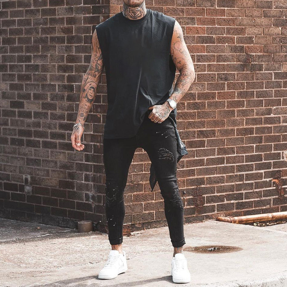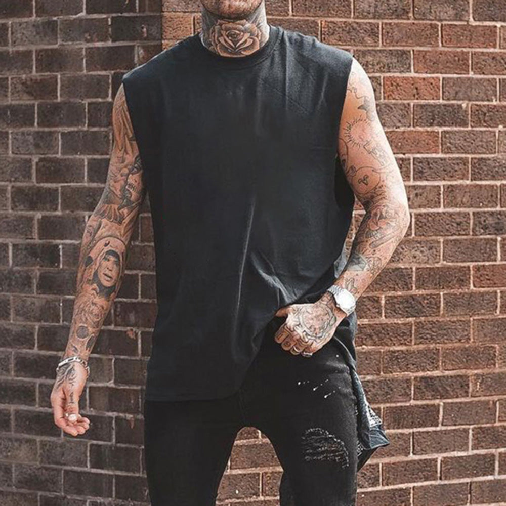 Plain Loose Sports Casual Round Neck Men's Tank Top-B