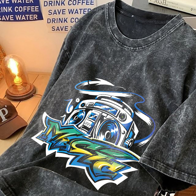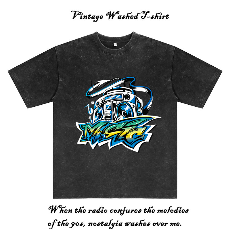 Radio Music Print Men's Washed Black Color T-shirt