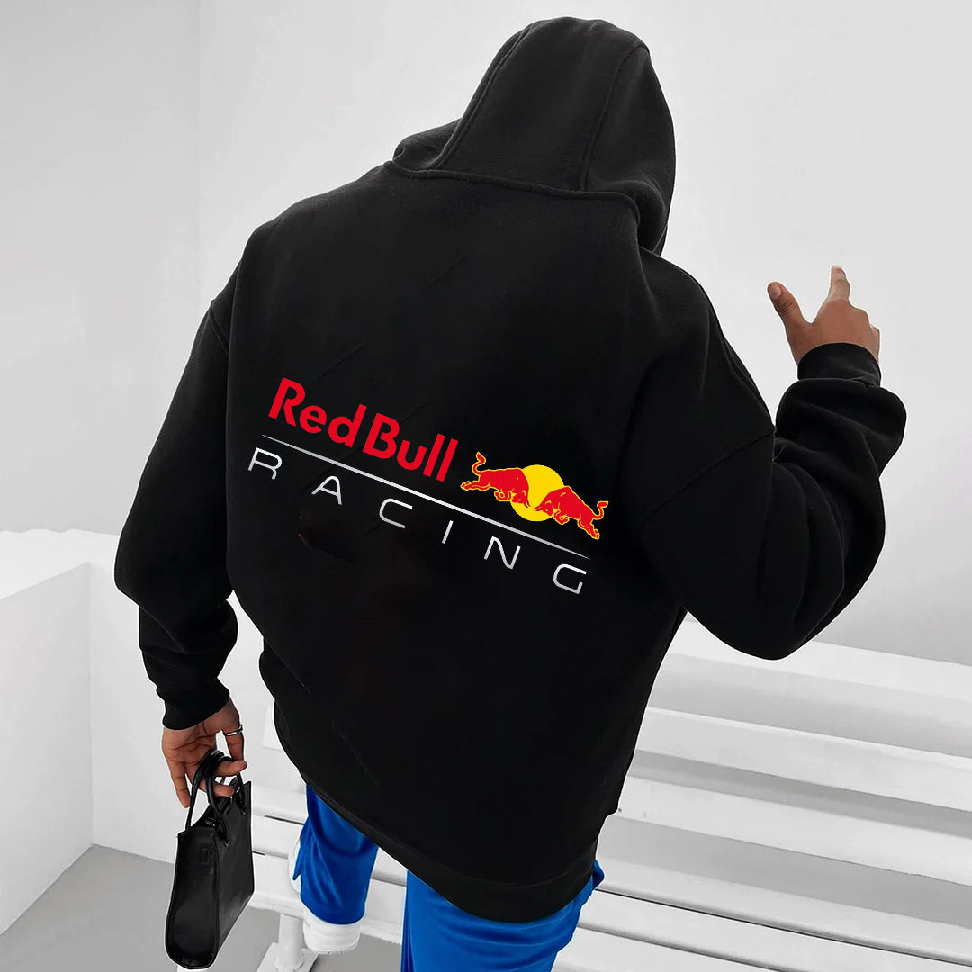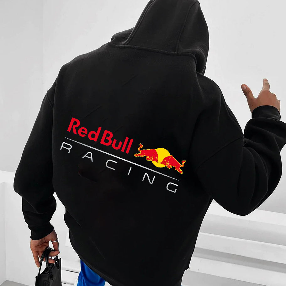 Introducing our men's graphic print hoodie, designed for both style and comfort. This hoodie features a cozy fleece lining to keep you warm during colder days. The inspiration for the print comes from the iconic Red Bull Racing, adding a touch of sporty flair to your look. Whether you're lounging at home or heading out for a casual outing, our Men's Hooded Sweatshirt is the perfect choice for a fashionable and cozy wardrobe staple.