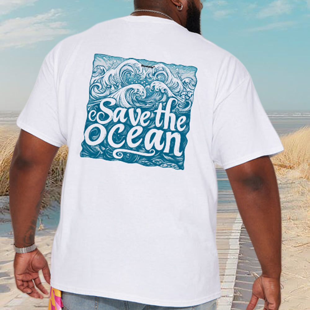 Retro Ocean Wave Print Men's Short Sleeve T-shirt
