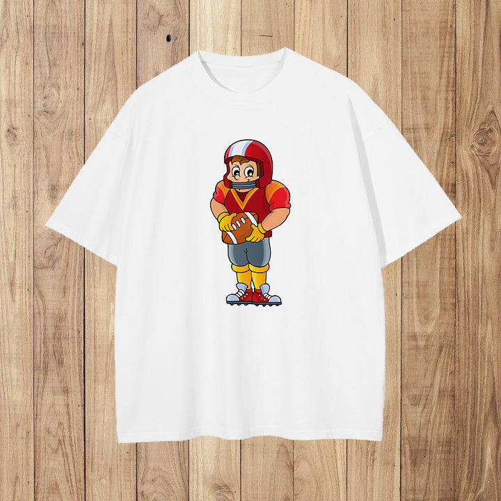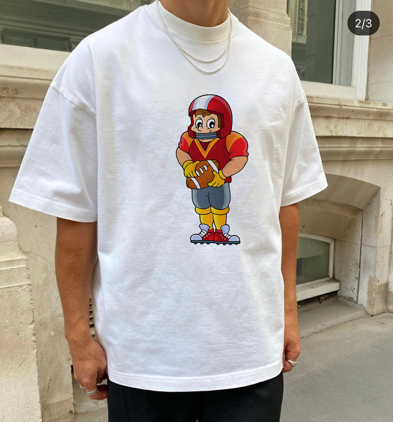 Our latest addition to the men's fashion collection - the short-sleeved T-shirt. Crafted using a premium 230g weight pure cotton fabric, this piece guarantees comfort and breathability like no other. Designed in a loose fit, it offers a relaxed and laid-back appeal for all occasions. Adding a touch of charm, the shirt features an adorable rugby boy pattern, adding a playful element to your outfit. Elevate your style game with this must-have wardrobe staple.