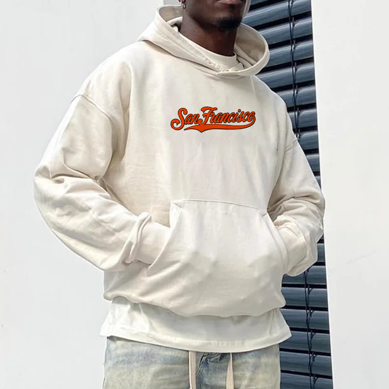 This men's white hooded sweatshirt features a San Francisco Giants design print, making it a captivating and stylish choice. The sweatshirt is made from high-quality fabric, ensuring both comfort and durability. It has a classic hooded design that provides extra warmth. The design with the San Francisco Giants logo makes it an excellent choice for fans. This hooded sweatshirt combines fashion and sporty style, making it perfect for casual wear or showing support for your favorite baseball team. Whether indoors or outdoors, this sweatshirt allows you to proudly display your love for the San Francisco Giants.