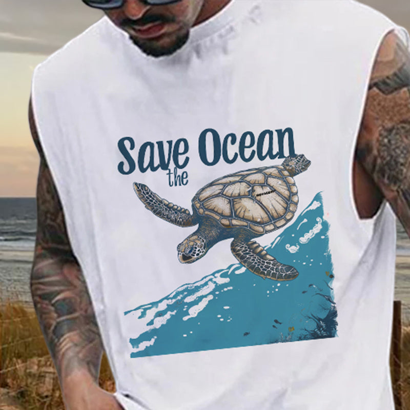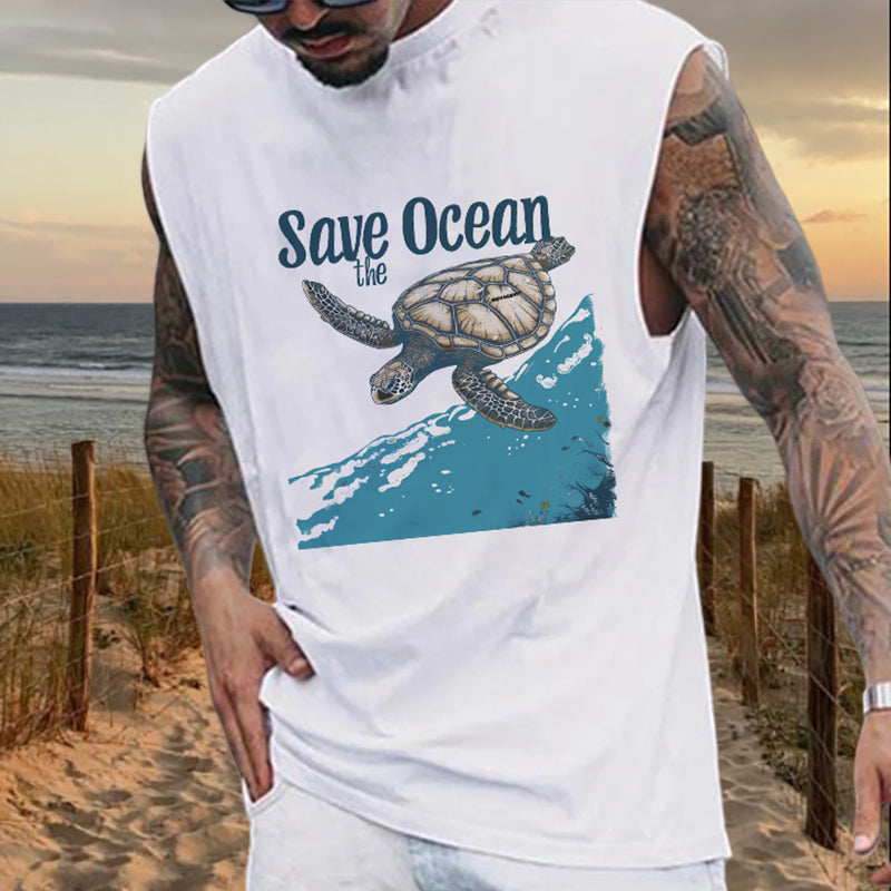 Sea Turtle Print Ocean Lover Men's Tank Top