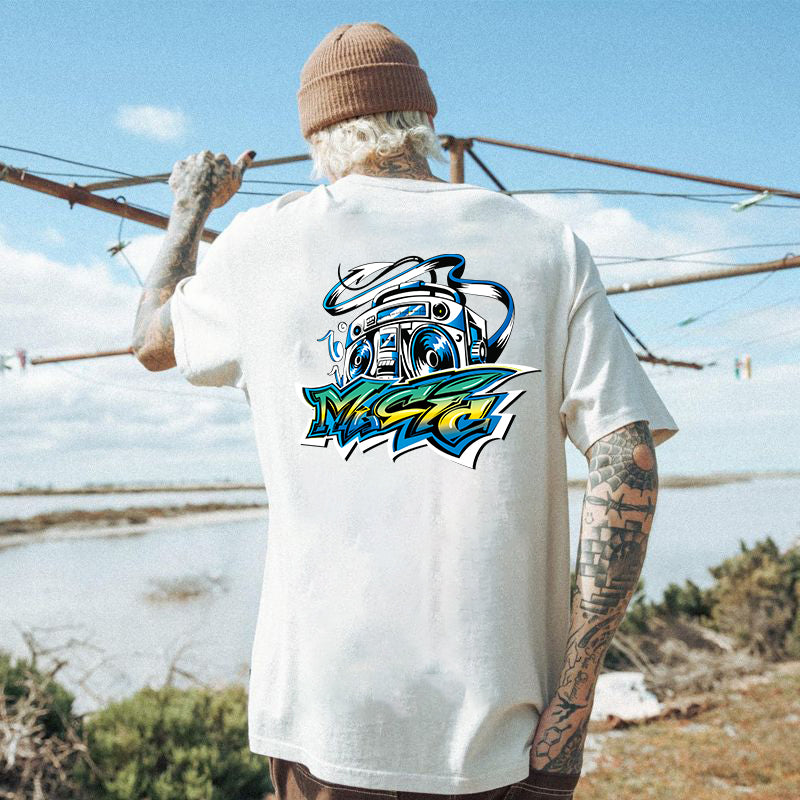 -Material:100% Cotton -Music is an indispensable part of our lives.This print is dedicated to all of you who love music. -This T-shirt is available in white and khaki colors. The white one is made of 230g fabric, while the khaki one is made of 210g fabric. You can choose according to your actual needs.