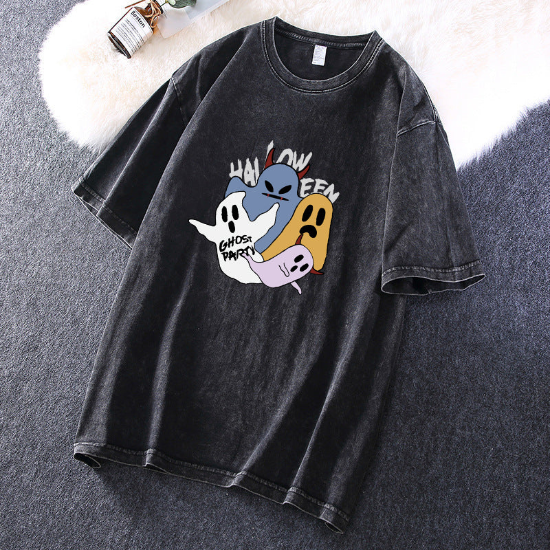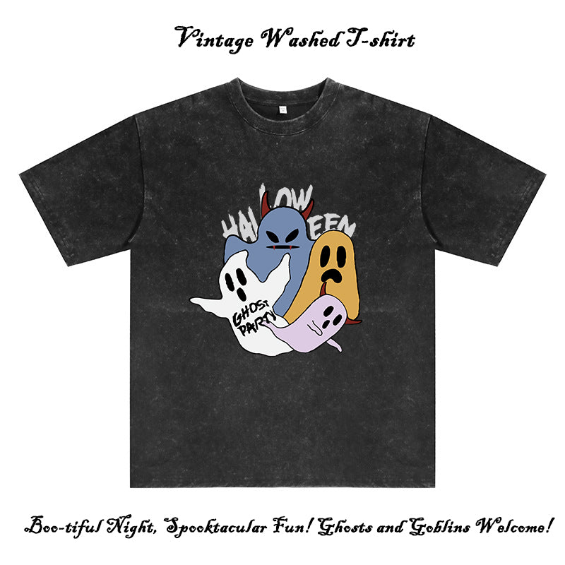 Spooktacular Fun Ghosts Print Men's Washed Black Color Tee