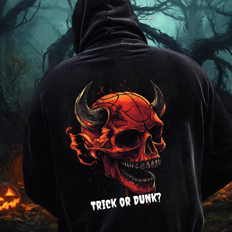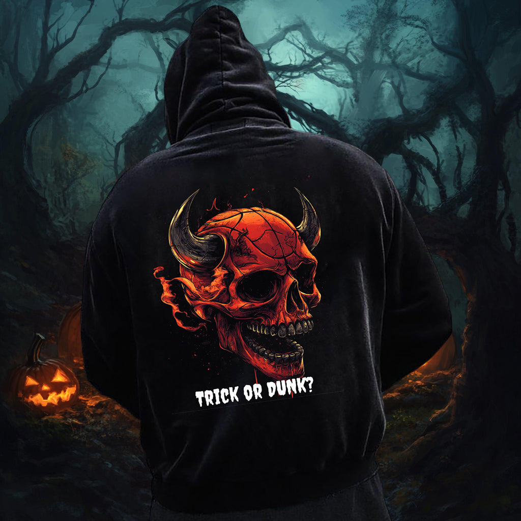 Spooky Season Skull Bulls Print Men's Fleeced Hoodie
