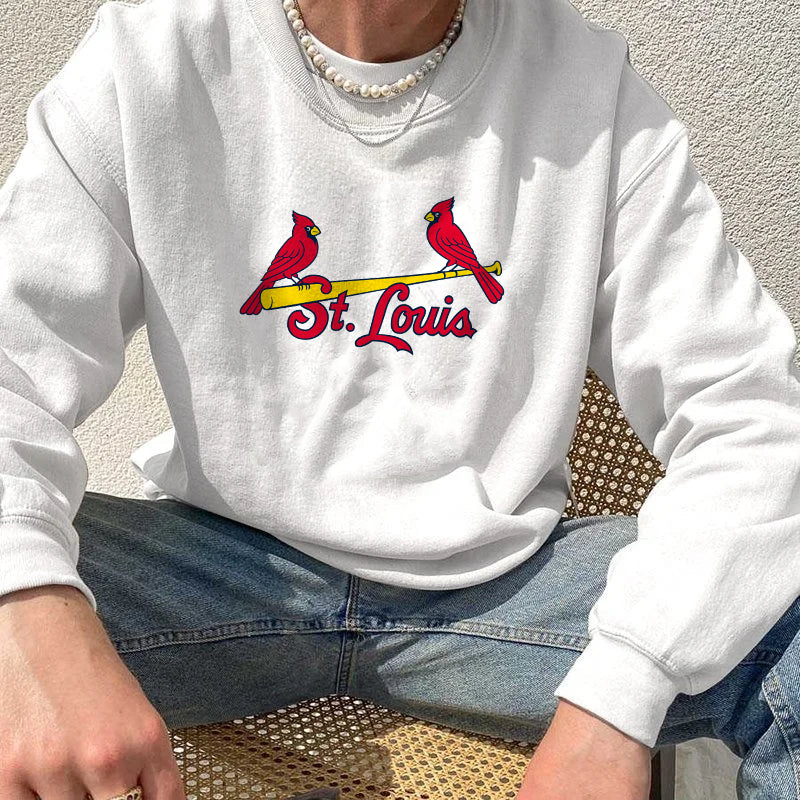 This round-neck sweatshirt featuring a St. Louis Cardinals design print is an irresistible fashion choice. Made of high-quality fabric, it offers comfort and softness for all-day wear. The St. Louis Cardinals design print on the sweatshirt showcases your support and love for this legendary baseball team, making you stand out among the fan community. With its classic round-neck design and casual loose fit, this sweatshirt is suitable for pairing with various casual or sporty outfits. Whether in everyday life or at the stands, this sweatshirt adds a stylish touch and expresses your personality.