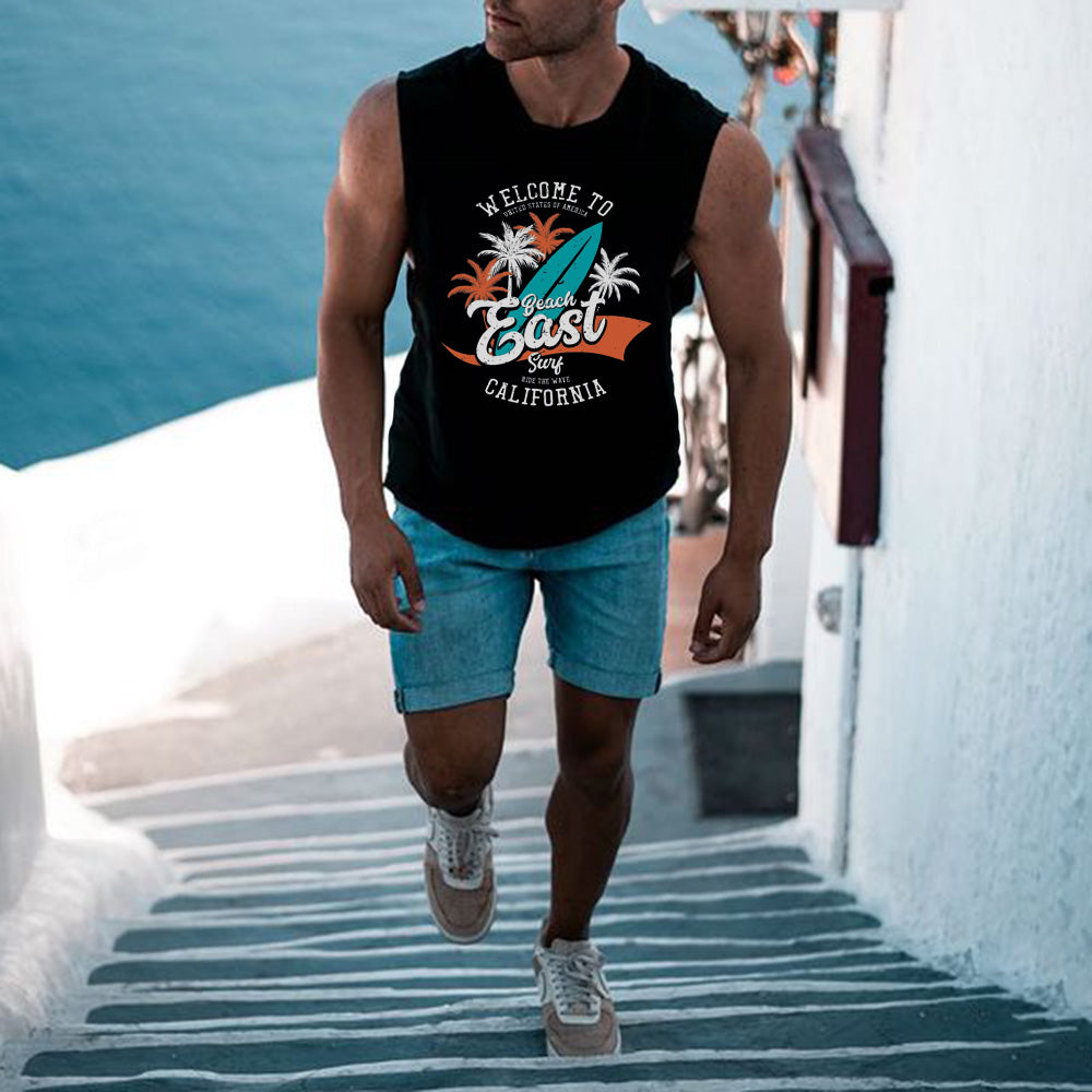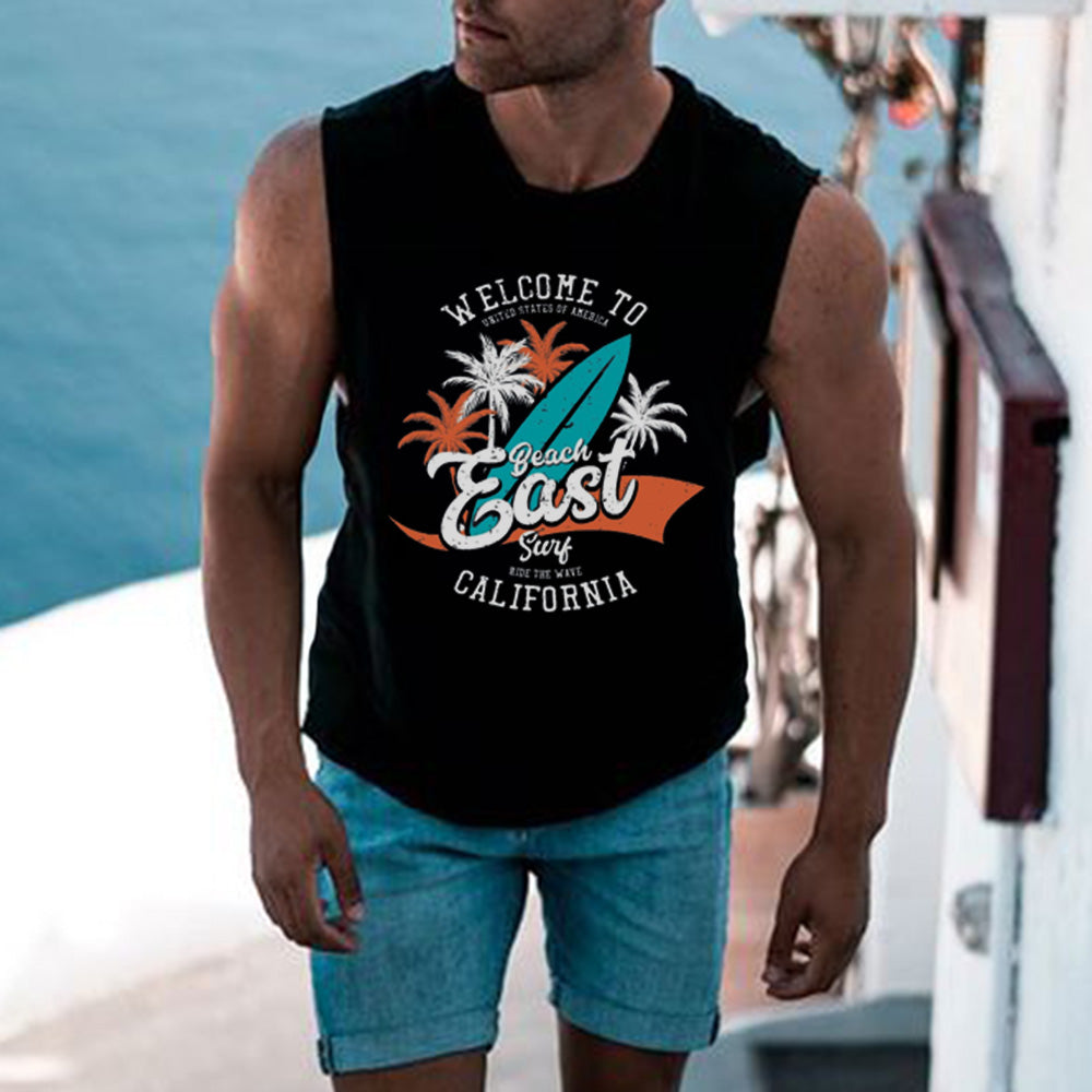 Beach Vacation Graphic Print Loose Casual Men's Tank Top-C