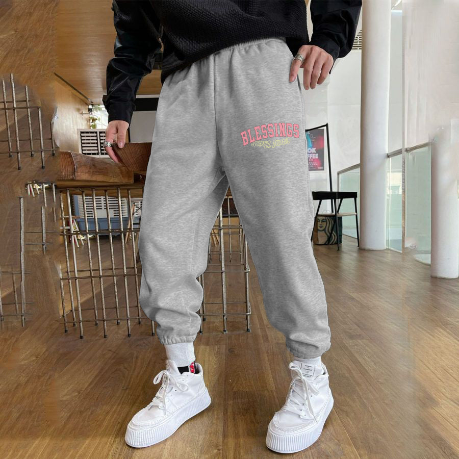 Blessing Men's Casual Streetwear Elastic Waistband Fleece Sweatpants