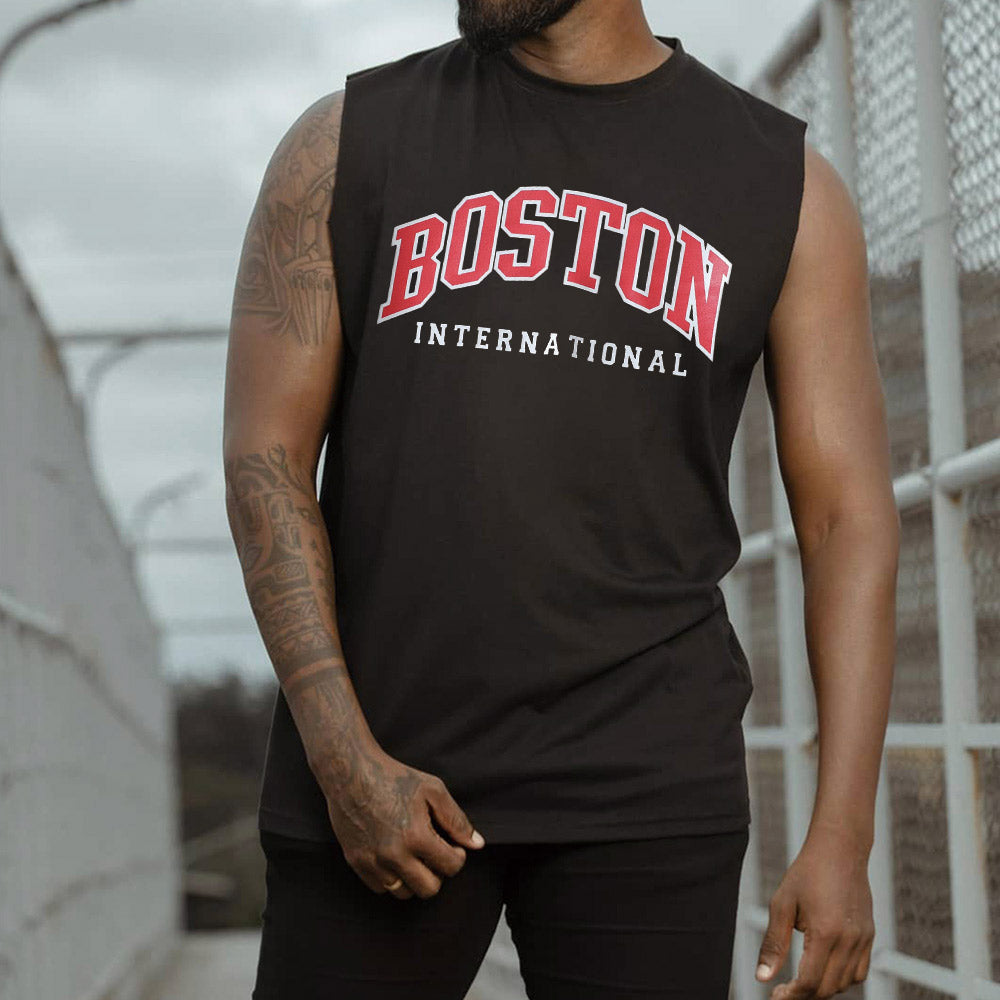 Boston Graphic Print Athleisure Men's Tank Top-C