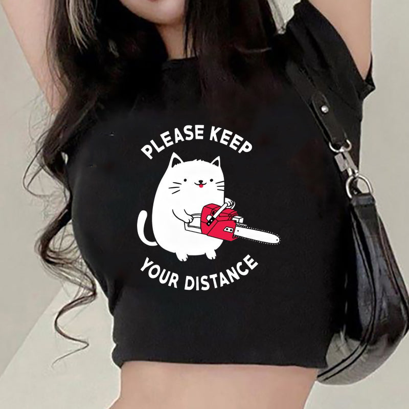 Cat with Chainsaw Lady's Crop Tee