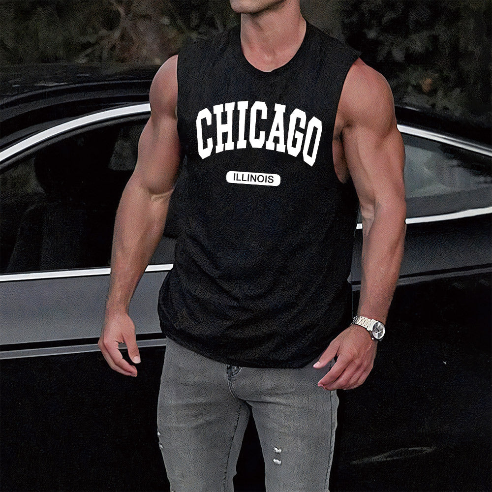 Chicago Alphabet Graphic Print Athleisure Men's Tank Top-C
